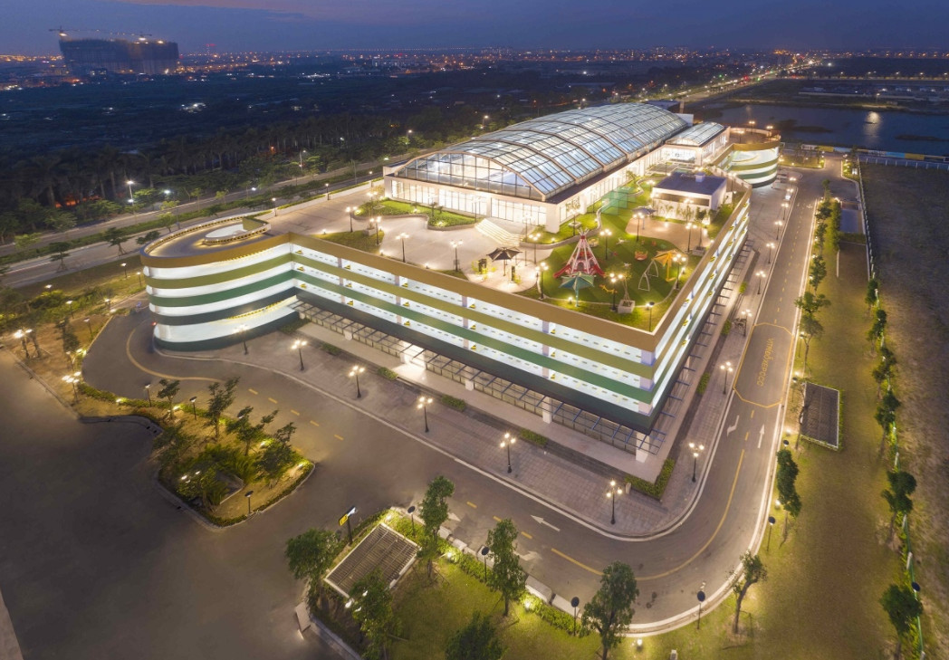 Tầm nhìn tổ hợp 5 tầng kết hợp bể bơi mái kính rực rỡ từ tòa căn hộ R1.01, R1.05.