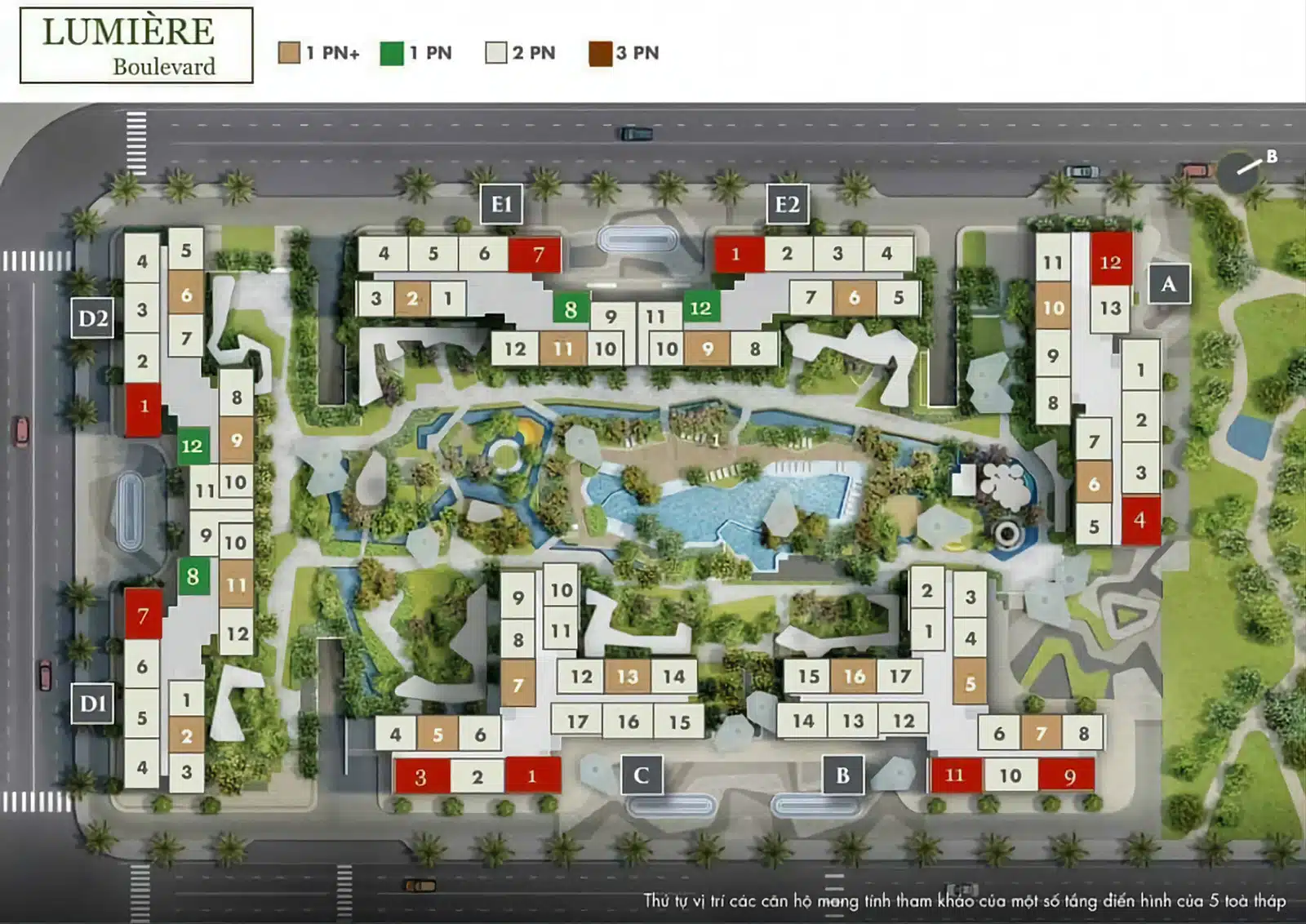 - Số tòa: 5 tòa nhà