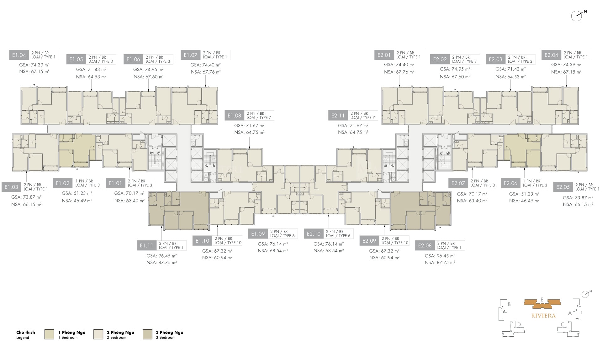 - Quy mô dự án: 5094 căn 10, tòa với hai phân khu Rivera và Gardenia