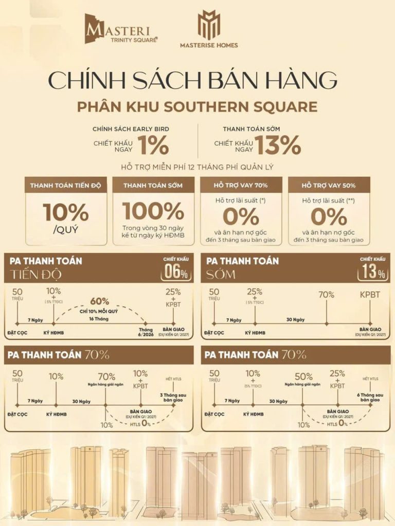 Là dự án cao tầng đầu tiên của bộ sưu tập này, Masteri Trinity Square mang trong mình trọn vẹn bộ ba giá trị sống chuẩn Masteri: phong cách tinh tế, thiết kế duy mỹ và hệ tiện ích vượt trội, tạo nên không gian sống nơi mỗi khoảnh khắc đều trở nên xứng tầm – đáng nhớ.