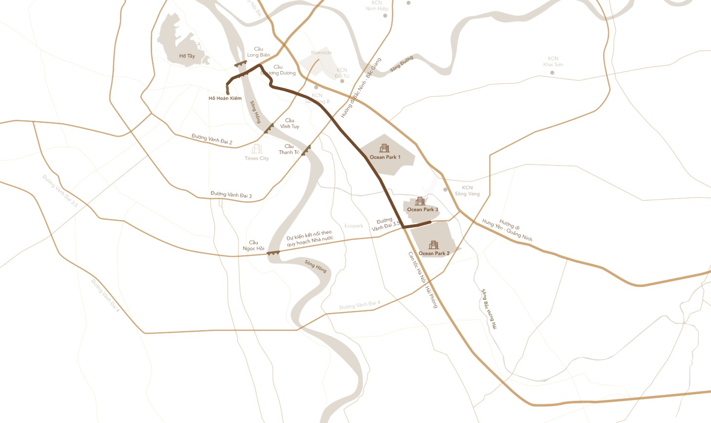 Masteri Trinity Square cũng sở hữu kết nối vùng thuận tiện qua các trục Cao tốc 5B và quốc lộ 5A tới các vùng kinh tế trọng điểm Miền Bắc như Hải Phòng, Quảng Ninh, Bắc Giang, Bắc Ninh, Hưng Yên, Vĩnh Phúc, …