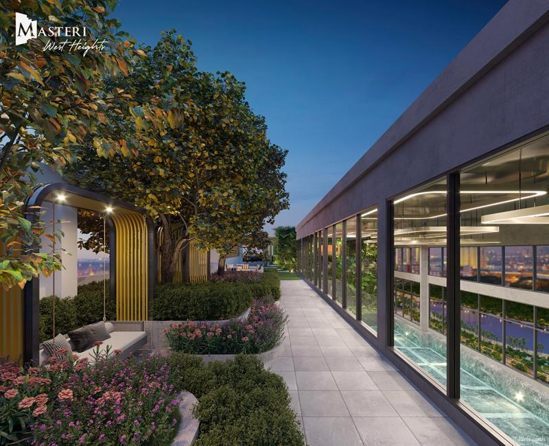 Vườn treo, lối dạo bộ, tiểu cảnh nước và không gian “wellness” hài hòa – mang đến trải nghiệm sống xanh đúng chuẩn Masterise.