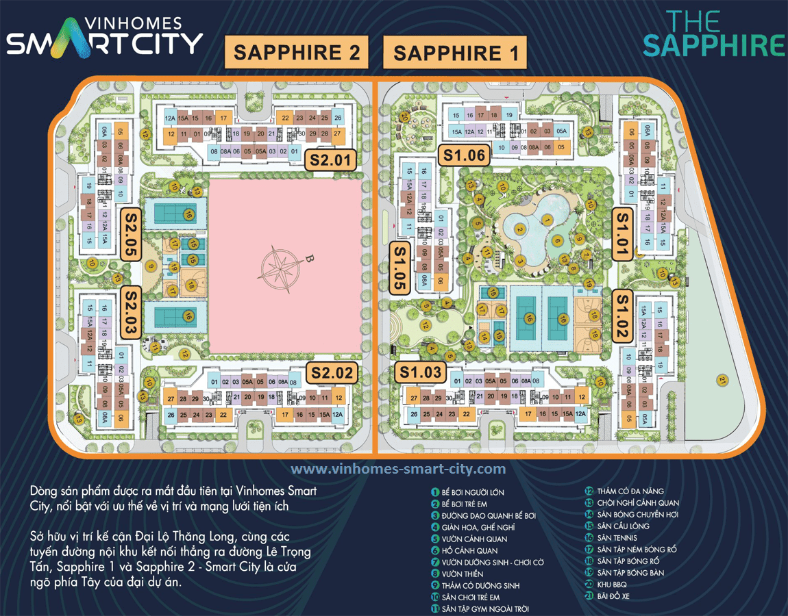 Tiện ích Sapphire 1 Vinhomes Smart City được quy hoạch ở đâu?
